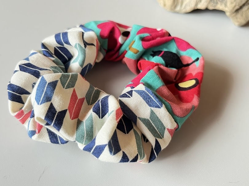 Nordic Flower &Yagasuri Japanese Traditional Pattern Scrunchie